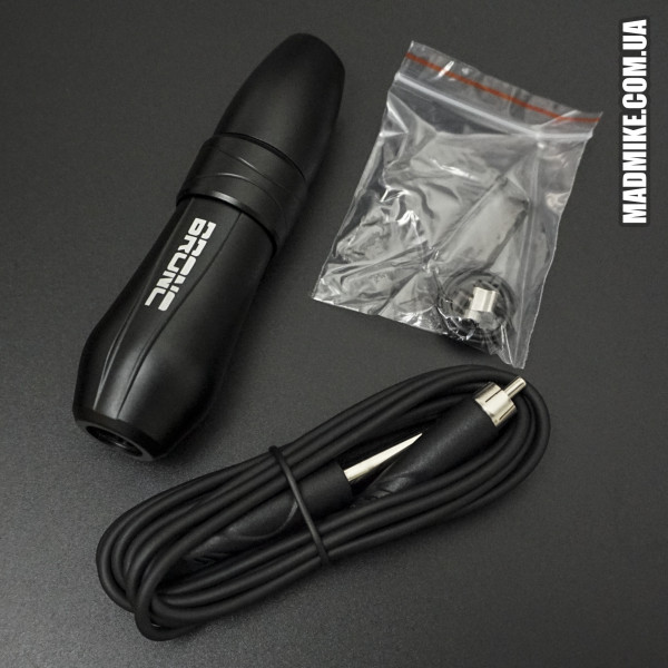 BRONC Pen V10 - нова тату машинка від компанії Bronc з удосконаленою системою приводу. Працює на швейцарському моторі, який має високу частоту та потужність, при цьому він практично безшумний. Корпус машинки виконаний з легкого та міцного авіаційного алюмінієвого сплаву, стійкого до подряпин. Bronc Pen V10 має вбудоване регулювання жорсткості удару та довжини ходу (3,70 мм та 3,2 мм) із системою перемикання між Liner та Shader. Машинка проста в обслуговуванні, легко розбирається і збирається, не вимагаючи особливих технічних навичок.