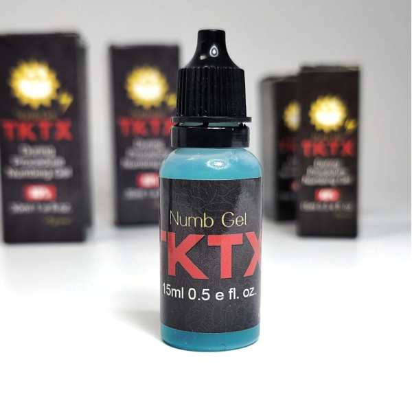 TKTX Гель – анестетик, который не только надежно обезболивает, но и имеет длительный срок действия и используется для: перманентного макияжа, татуировок, пирсинга, лазерного удаления татуировок. Он имеет множество преимуществ перед другими анестезирующими средствами. Анестетик обладает выраженным противоотечным действием за счет коагулянта в составе, который уменьшает кровоточивость и повышает скорость дальнейшего заживления поврежденной кожи. Анестетик