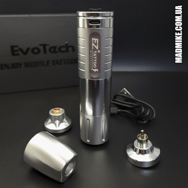 Беспроводная тату-машинка EZ EvoTech Silver (до 8 часов работы)