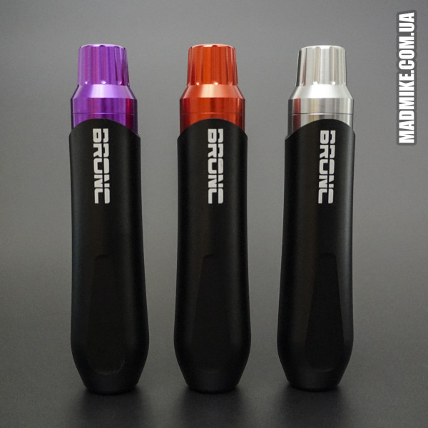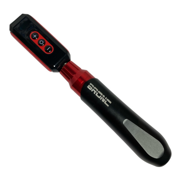 BRONC Pen V6 – изготовлен из 2 цельных частей алюминия, что обеспечивает максимальную плотность и минимальный люфт во время работы. Все качество этой модели заключается в мощном 6-ваттном двигателе из Швейцарии и держателе в 32 мм с регулировкой вылета иглы. Вылет иглы от 0 до 4 мм, что является классическим вариантом для большинства машинок на рынке. Вес: 132 грамма с учетом картриджа. Идеально подходит для татуировок любой сложности и стиля. Как для закрашивания, контура, так и для татуажа, перманентного макияжа благодаря своему мотору с высоким крутящим моментом.