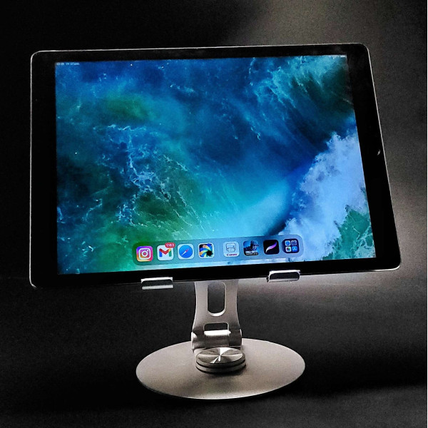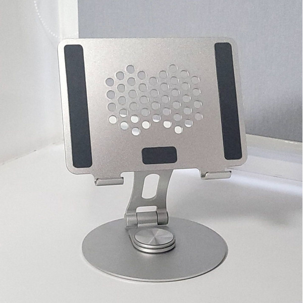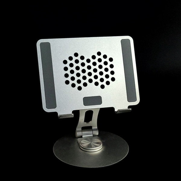 Подставка для планшета 7-12 дюймов. Изготовлена из алюминия и оснащена нескользящими накладками, которые надежно фиксируют устройство и предотвращают его падение. Поворачивается на 180 градусов и позволяет регулировать угол наклона и высоту удержания устройства
