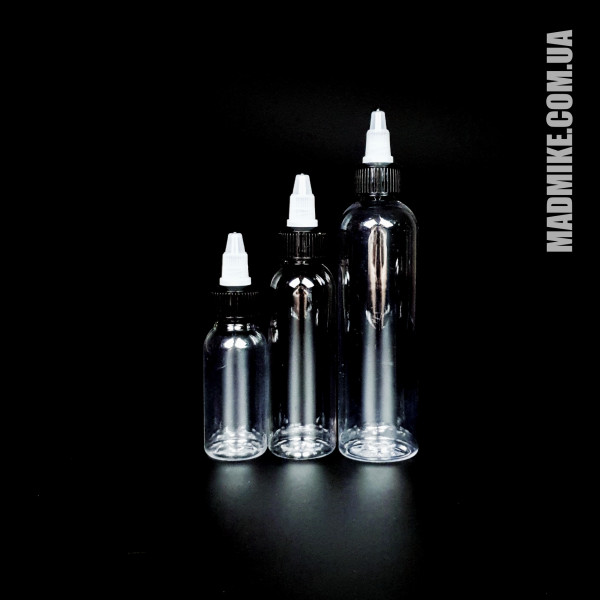 Флаконы разных объемов с удобными крышками. Подходят для тату-красок или любых других жидкостей.