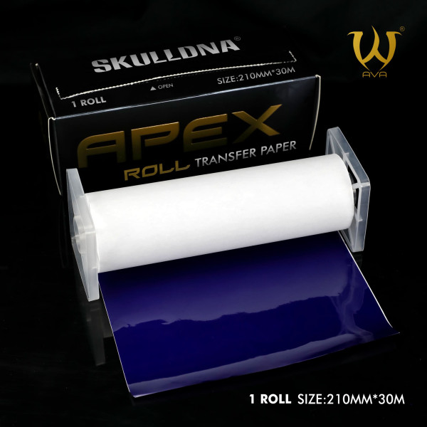 Представляем AVA SkullDNA Apex Roll – рулон высококачественной трансферной бумаги, специально разработанной для тату-мастеров, работающих с крупными проектами и использующих тату-принтеры. Этот рулон длиной 30 метров обеспечивает непревзойденную гибкость в создании трафаретов любого размера, от масштабных работ до серии мелких эскизов, идеально подходя для непрерывной печати.